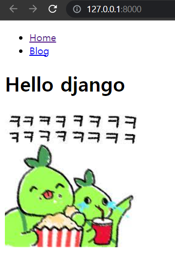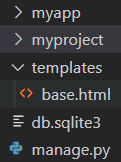 myapp/templates/myapp/index.html에서 {% extends "base.html" %}을 작성해주면 base.html을 그대로 이어받아 {% block %}을 이용해서 추가로 내용을 작성할 수 있다.