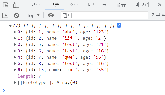 기존에 저장되어 있는 내용을 모두 담은 json 형식의 데이터를 볼 수 있다.