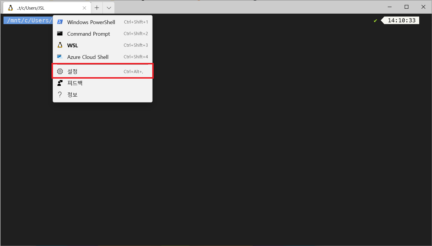 1. Terminal의 기본 세팅을 WSL로 변경하기
